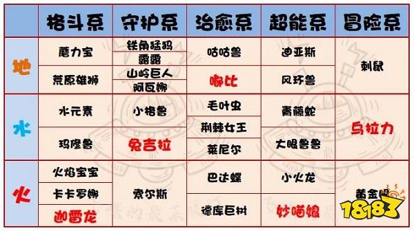 提燈與地下城元素之塔攻略首先我們看一看按照系別劃分,所有寵物的歸納