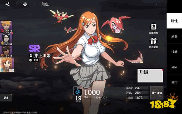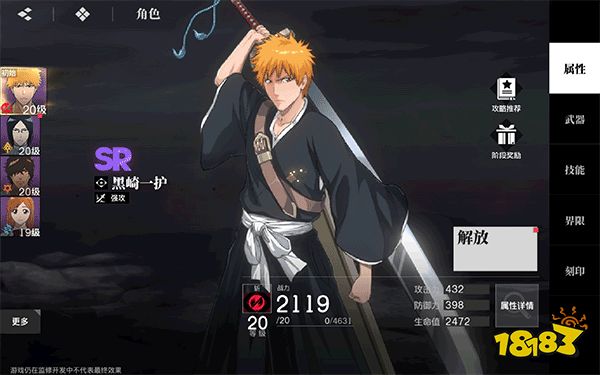 黑崎一護:核心輸出角色,普攻積能快,必殺技兼具群體清場和單體爆發(fā)能力,是推圖與PVP的不二之選。建議優(yōu)先升級技能等級,搭配暴擊率提升的刻印,最大化收割能力。