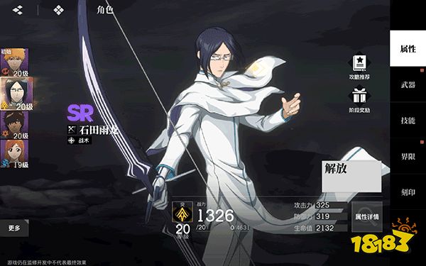 石田雨龍(SR):遠程滅卻師,神圣滅矢與近戰(zhàn)角色形成互補,專屬武器「弧雀」大幅提升基礎(chǔ)屬性。