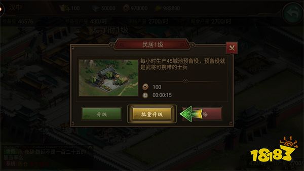游戲開始后,你的首要任務是發(fā)展自己的城池。建立民居是第一步,因為它們能夠生產(chǎn)預備役,即武將所帶領(lǐng)的士兵,這是最基礎也是最重要的兵力來源。因此,確保生產(chǎn)足夠的預備役是至關(guān)重要的。