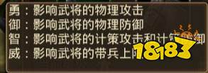 成長值是衡量武將屬性上限的關(guān)鍵指標,它直接關(guān)聯(lián)到武將的潛力和能力。成長值越高,武將的屬性上限也就越高。屬性分為四種:勇,影響武將的物理攻擊;御,影響物理防御;智,影響計策攻擊和防御;威,影響帶兵上限。