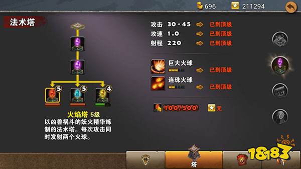 2. 法師塔:冰塔和火焰塔中,個(gè)人強(qiáng)烈推薦火焰塔?;鹧嫠姆秶械?,傷害偏高,輸出穩(wěn)定,范圍傷害極高。而冰塔更偏向于控制,對(duì)單體目標(biāo)有較好的效果。