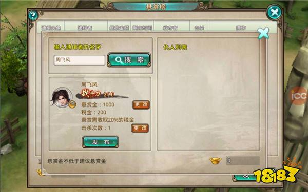 1、所有的幫會(huì)成員均可以發(fā)布懸賞任務(wù),點(diǎn)擊懸賞后,可以輸入對(duì)方名字或ID來(lái)進(jìn)行通緝懸賞。