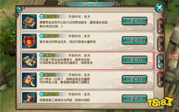 界面入口:幫會(huì)—活動(dòng)—通緝令