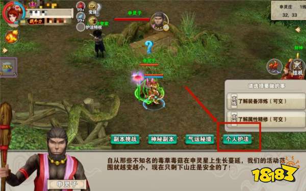 個人護法其實就是一個單人副本,只允許玩家單人進去挑戰(zhàn)。若少俠您處于組隊狀態(tài),則需要先退出組隊,之后才可以進行個人護法副本