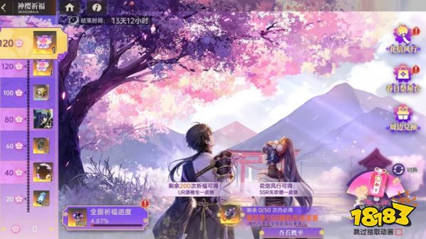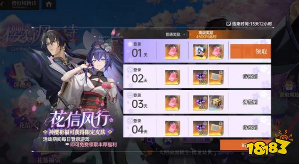 活動里有個叫「花信風(fēng)行」的簽到板塊,每天登錄就能領(lǐng)一枚「神櫻御守」,整個活動期間免費能拿到7枚。這個道具后面要用到,所以每天記得進來領(lǐng)一下,別漏掉了。除了簽到,還有「神櫻花簽·橙」刮刮卡可以玩,運氣好的話一發(fā)就能中。堅持簽到并解鎖高級獎勵之后,限定皮膚「隱狩矢吹櫻·風(fēng)起櫻舞時」就能到手,皮膚的畫風(fēng)是櫻花主題,看起來挺好看的。
