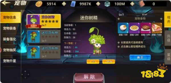 ②等級: 決定寵物基礎屬性,寵物上場后基礎屬性會附加給角色,消耗寵物糧食可以提升寵物等級。