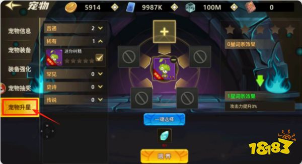 ③星級: 用于解鎖寵物的詞條,寵物上場后詞條效果會附加給角色,同名且同星級的寵物可以作為素材,提升寵物星級。