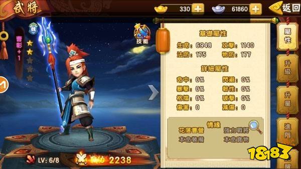 武將養(yǎng)成包括升級、升星、進階和覺醒四個方面。升級需要消耗丹藥,升星則需要碎片和銀兩,進階需要卷軸。目前覺醒功能尚未開放。