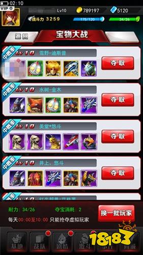 2、當(dāng)玩家等級(jí)達(dá)到10級(jí)后,將會(huì)由劇情任務(wù)帶領(lǐng)開啟“寶物爭(zhēng)奪”系統(tǒng)。在這里,玩家朋友們將會(huì)優(yōu)先遇到一些弱小的NPC角色,供大家練手,但其部件掉率也相對(duì)較低。其次,則是能夠刷新出距離玩家等級(jí)和戰(zhàn)斗力相近的擁有玩家所需要部件的角色,小伙伴們能夠通過巧取豪奪的方式,從對(duì)方手中搶奪自己所需的法寶和變身器部件,從而合成強(qiáng)大的成型物品,提升人物戰(zhàn)斗力。