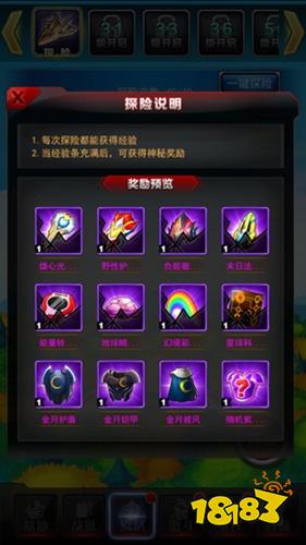 3、探險(xiǎn)寶箱寶箱到底能獲得什么呢?當(dāng)然是好東西,看到圖中一堆紫色極品裝備是不是心動(dòng)了呢,不僅如此還能獲得隨機(jī)的藍(lán)及紫裝、隨機(jī)藍(lán)及紫色寶物碎片、金色的法寶及變身器能源、還有藍(lán)色品質(zhì)的角色哦。如此豐厚的回報(bào),讓探險(xiǎn)的樂趣再度升級(jí)。