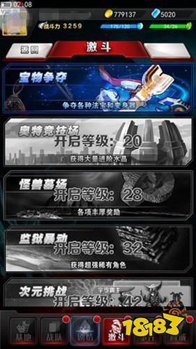 包含競(jìng)技場(chǎng)、宇宙探險(xiǎn)、怪獸入侵等多種挑戰(zhàn)模式,參與挑戰(zhàn)可獲取稀有養(yǎng)成材料與限定獎(jiǎng)勵(lì),競(jìng)技場(chǎng)可與全服玩家對(duì)戰(zhàn),爭(zhēng)奪光之排名,解鎖專屬榮譽(yù)。