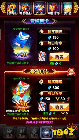 6、月卡,有錢的小伙伴們可以開一個豪華月卡或者雙月卡,加上每天晚上答題可以拿月卡券,這樣每天既可以領(lǐng)到光元也有VIP經(jīng)驗可以拿,是一個很不錯的選擇。